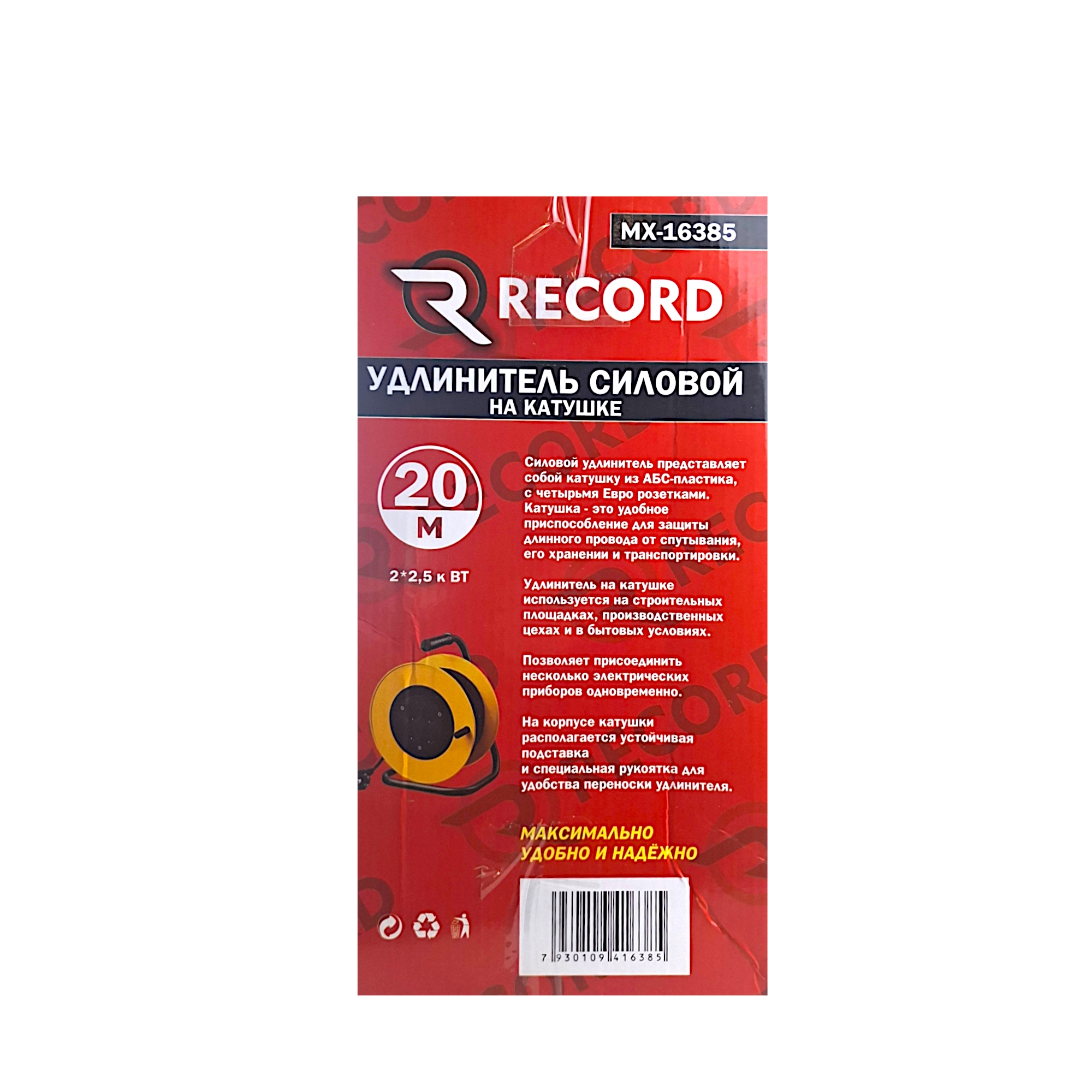 Силовой удлинитель на пластиковой ABS катушке 20 метров MX 16385 создан для профессиональной эксплуатации в тяжелых условиях. Благодаря 20-метровому кабелю вы получаете полную свободу действий на стройплощадке, в цеху, гараже или при работе во дворе.