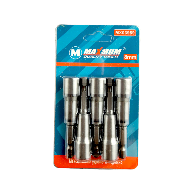 Набор бит торцевых 8*65 мм, 5шт, "MAXIMUM" создан для захвата различных шестигранных гаек, винтов с квадратной головкой, крюков и головок болтов.