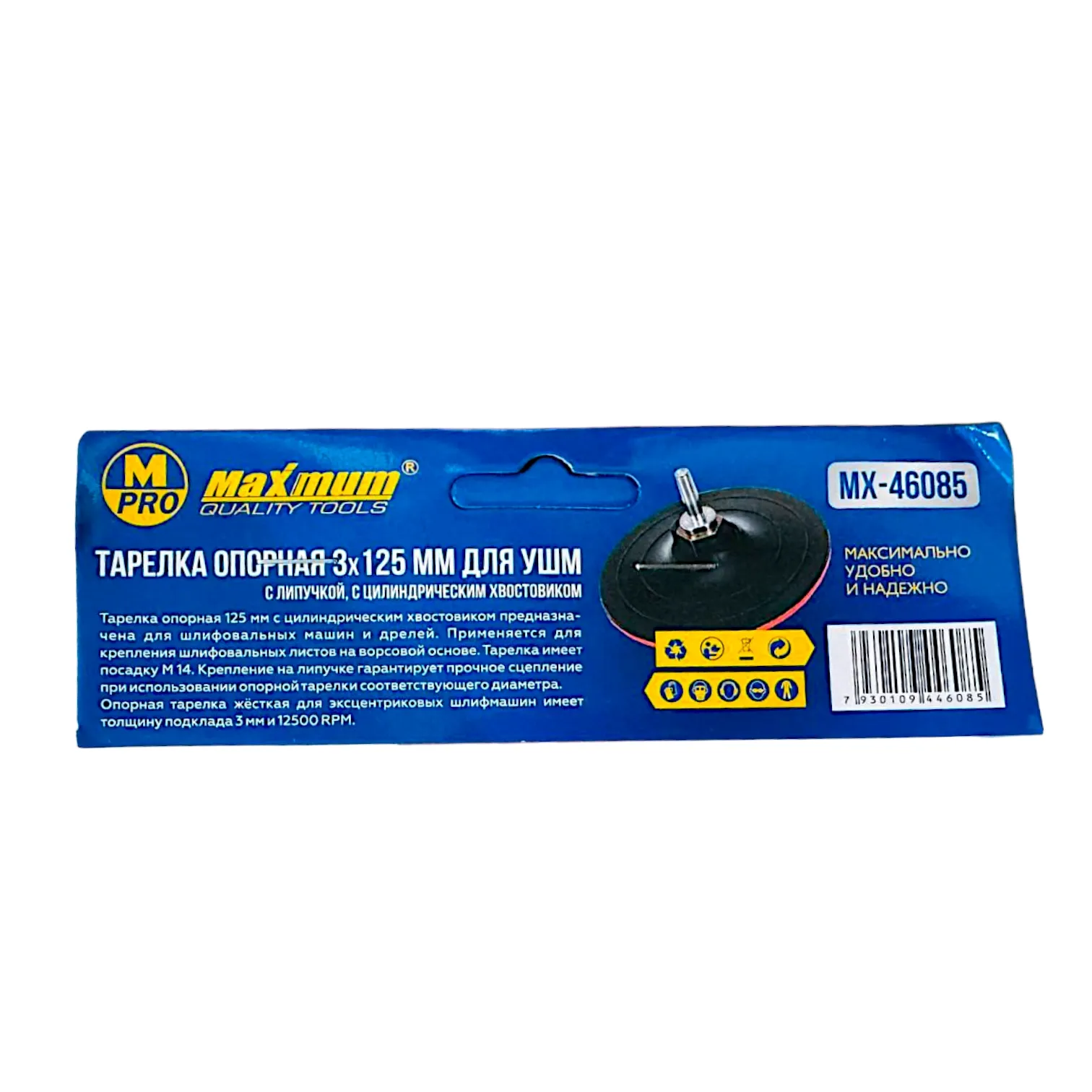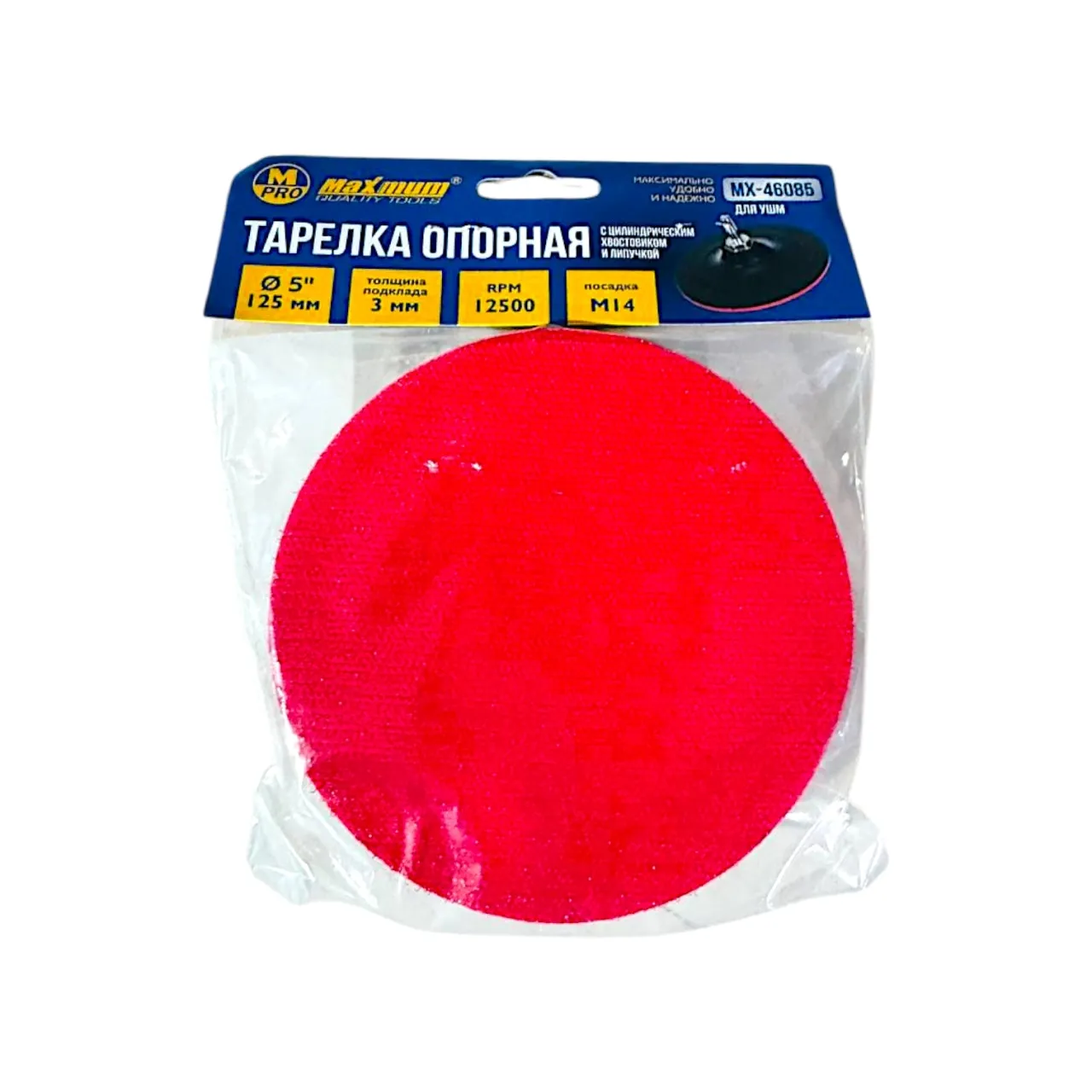 Тарелка опорная 3×125 мм для УШМ, с липучкой, цилиндрический хвостовик, "MAXIMUM" (Максимум)MX 46085