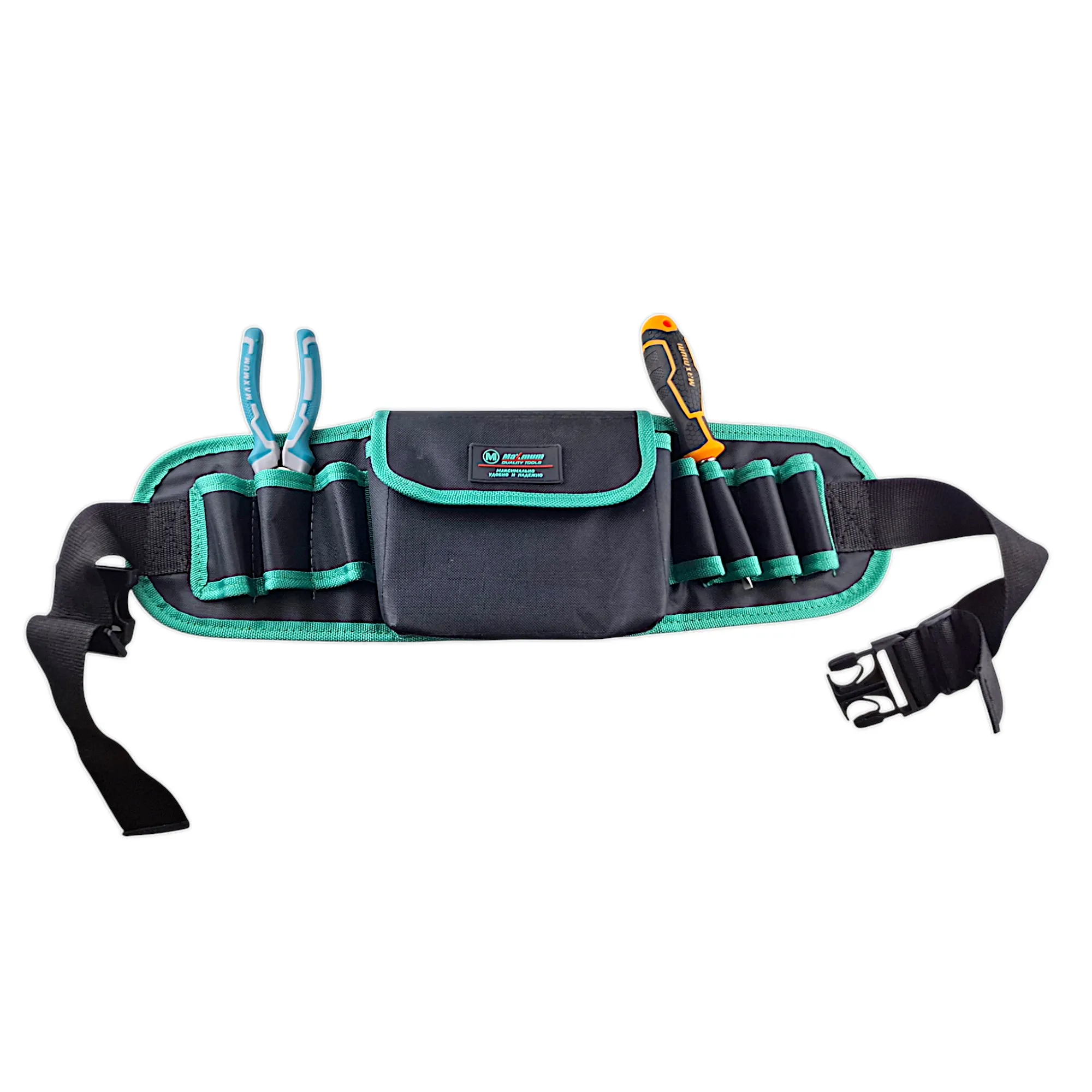 Сумка-пояс для инструментов с ремнем 130 см имеет 8 открытых отсеков и один большой карман на липучке. Пояс монтажника выполнен из прочного водоотталкивающего материала и имеет функциональную конструкцию, которая обеспечивает удобство и безопасность хранения инструмента.